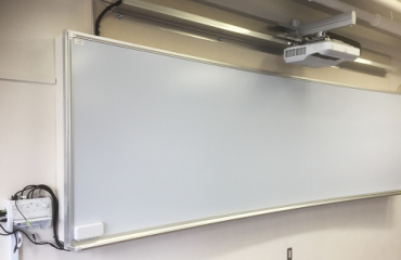 壁面全体がホワイトボードになる「アクティブホワイトウォール」を設置いたしました。